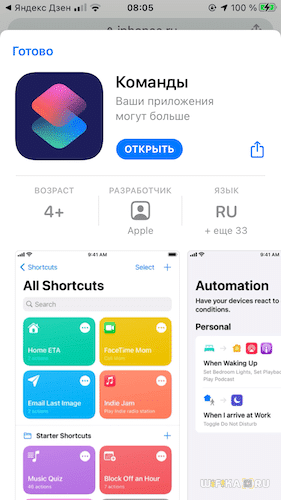 Ключовий момент тут не закриватиме програму швидких команд, інакше вікно з Ютубом пропаде.