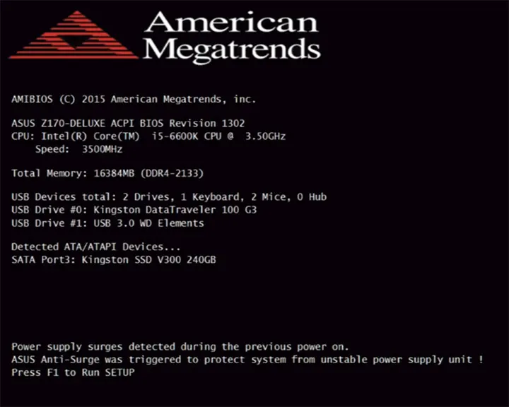 Повідомлення “Power supply surges detected during the previous power on” говорить про те, що спрацювала вбудована система захисту від стрибків напруги ASUS Anti-Surge. Її спрацьовування своєю чергою може бути викликано такими факторами: