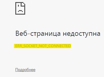 При спробі відкрити сайт у браузері Chrome, Yandex або Edge з’являється повідомлення про помилку ” Веб-сторінка недоступна ” з вказівним кодом ERR_SOCKET_NOT_CONNECTED . Помилка може з’являтися як при відвідуванні певного сайту або всі сайти можуть бути недоступними.
